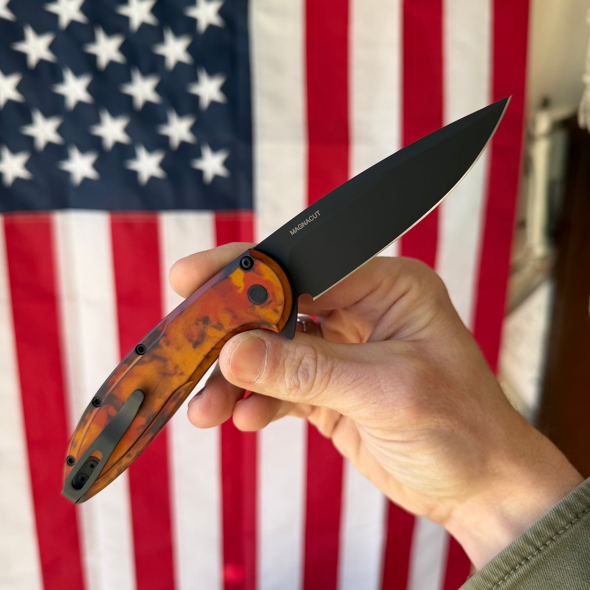 The Cambria 2 – Del Fuego is both history and innovation in one package. As the first flipper ever designed by Pro-Tech, this model carries legacy status while offering modern upgrades like MagnaCut steel and G-10 detailing. The result is a bold, functional piece of American craftsmanship that looks as hot as it performs.