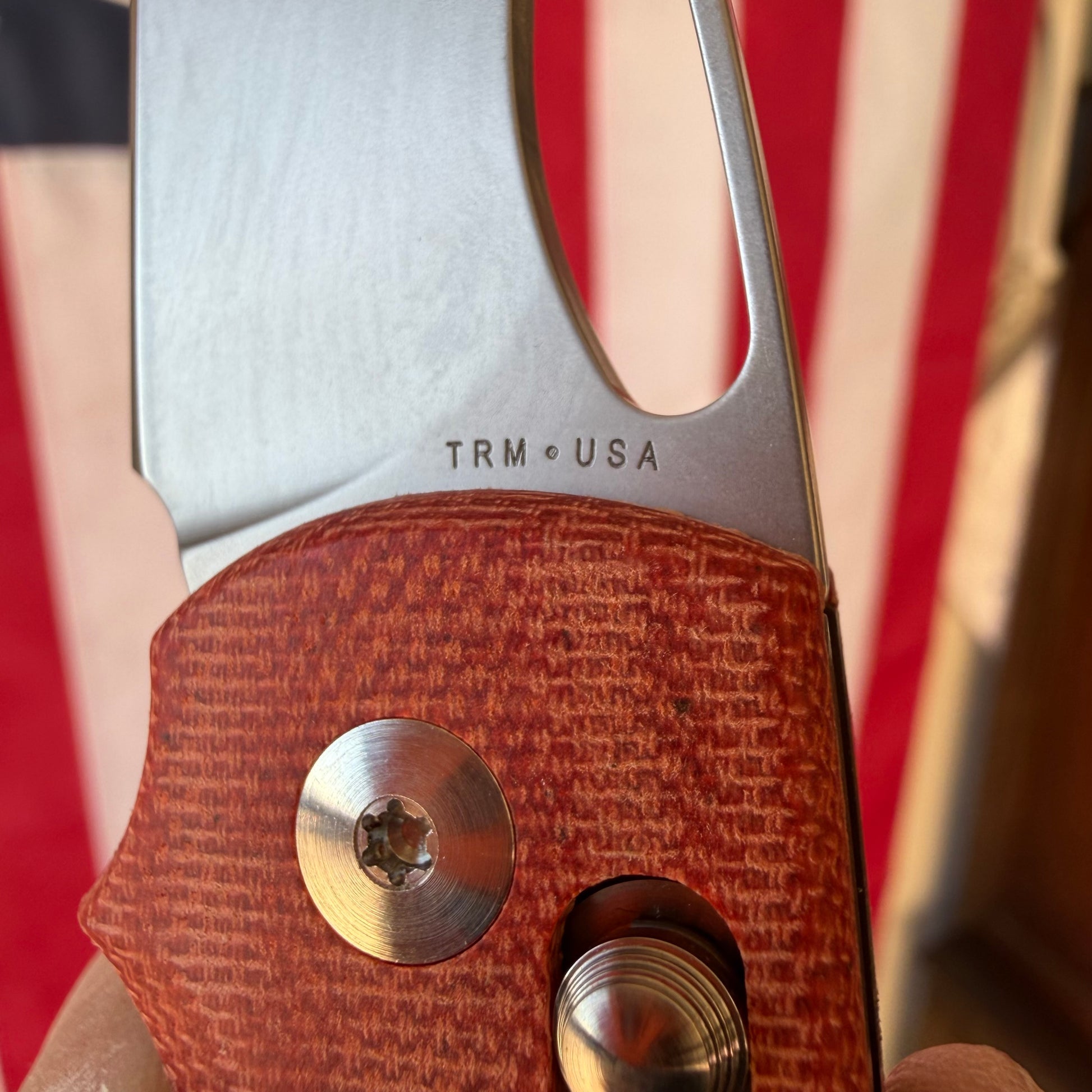 TRM Knives Bulldog Rev. B Folding Knife – Autumn Orange Micarta, MagnaCut Steel – Made in USA